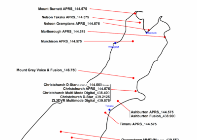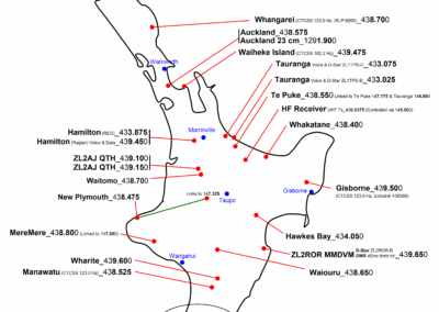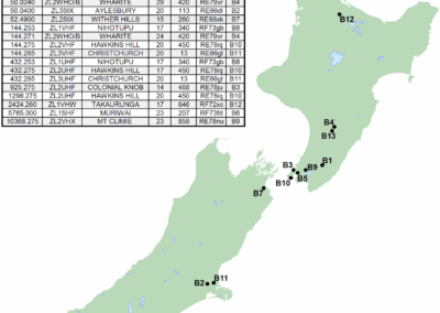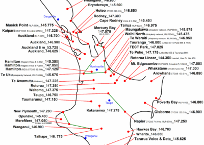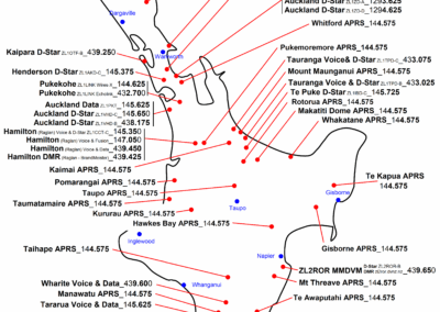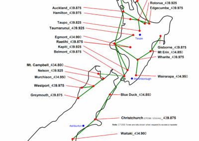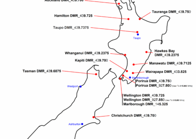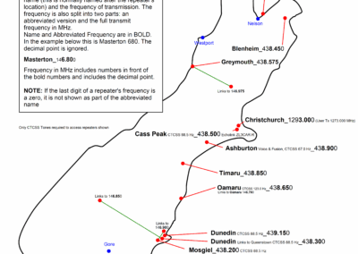 - Due to the number of repeaters in a small area making the map difficult to draw for the Wellington area there is a separate map for that area of the country.